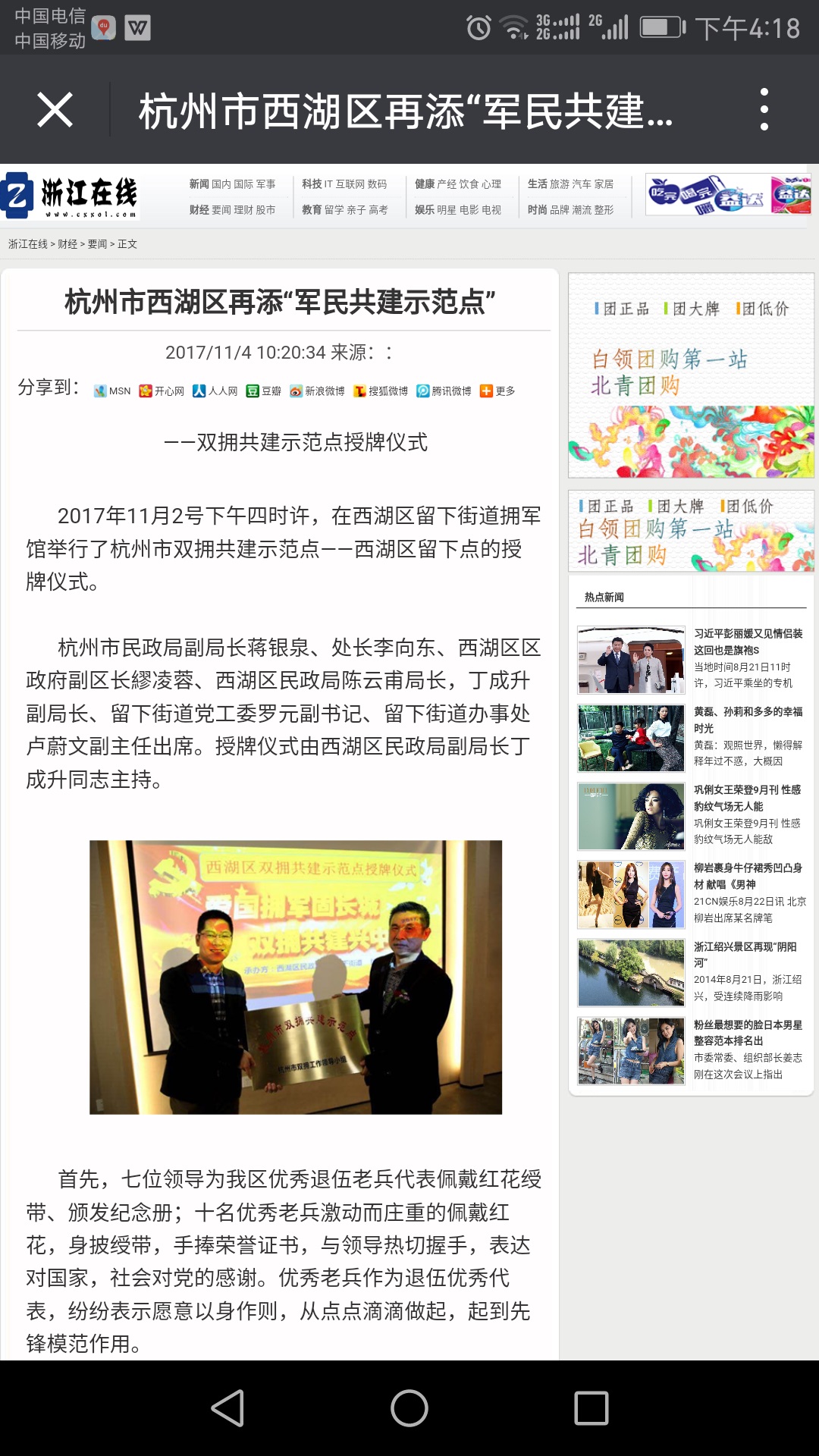 杭州市西湖区再添“军民共建示范点”